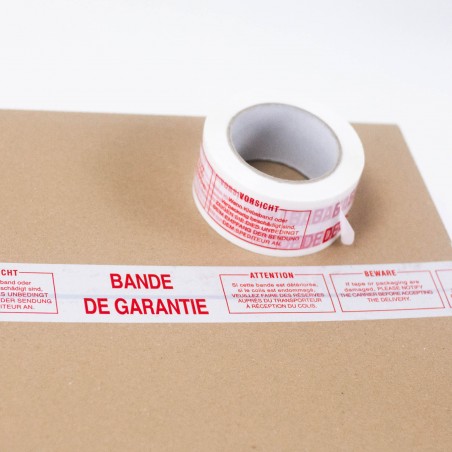 Impression en continu du texte rouge sur fond blanc : BANDE DE GARANTIE